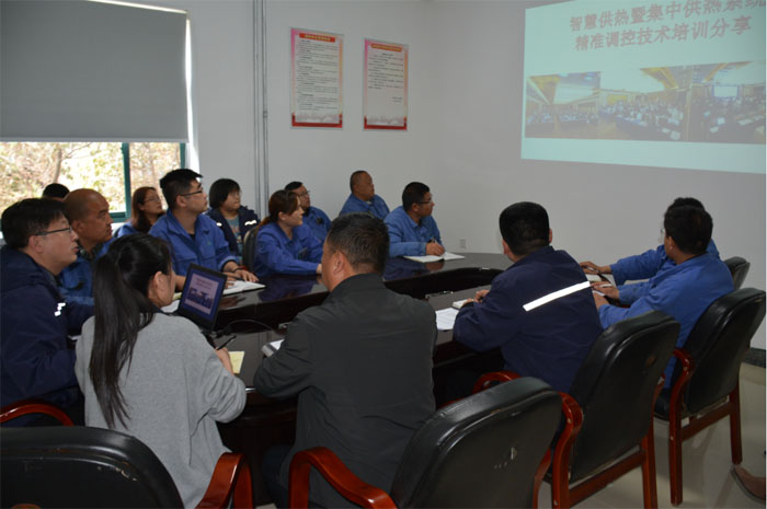 培訓(xùn)會上,孫永剛從供熱企業(yè)實現(xiàn)智慧供熱的意義、二次網(wǎng)信息化平衡管理系統(tǒng)、二次網(wǎng)能耗問題解決方案以及換熱站故障處理和日常維護等方面進行了專項培訓(xùn)。孫永剛在培訓(xùn)會上指出,隨著國民經(jīng)濟的不斷進步,人們對供暖質(zhì)量的需求也在逐步提高。近幾年,山東聚源熱力公司緊跟供熱行業(yè)發(fā)展趨勢,以科技引領(lǐng)供熱發(fā)展,充分借助物聯(lián)網(wǎng)、大數(shù)據(jù)、云計算著力打造智能化精準(zhǔn)供熱,實現(xiàn)了智能熱網(wǎng)平臺系統(tǒng)項目的成功落地。系統(tǒng)集合了遠(yuǎn)程數(shù)據(jù)采集、設(shè)備聯(lián)動控制、高清視頻監(jiān)控及大數(shù)據(jù)分析于一體,實現(xiàn)采暖季運行數(shù)據(jù)的匯總分析和趨勢測算,并實現(xiàn)系統(tǒng)自動通過熱源廠、換熱站所轄熱負(fù)荷用熱特性、圍護結(jié)構(gòu)的不同,選擇不同的供熱控制策略,完成熱網(wǎng)調(diào)節(jié)周期由“日”級別到“分”級別的跨越。在實際工作中,如何科學(xué)運用好智能熱網(wǎng)平臺系統(tǒng),這就要求我們要充分認(rèn)識打造智慧供熱的重要性,做好技術(shù)知識儲備,在信息采集時確保數(shù)據(jù)精準(zhǔn)真實,根據(jù)運行數(shù)據(jù)反饋形成智能調(diào)控策略,不斷突破二次網(wǎng)平衡調(diào)整的瓶頸,擺脫對經(jīng)驗的依賴,從而不斷提高供熱管網(wǎng)設(shè)備的安全水平,降低能源利用效率和運行成本,有效提升企業(yè)的服務(wù)水平和用戶的舒適度。